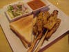 Usually, chicken satay (grilled spiced chicken on skewers, $6.50) is tasty but a little dry. But at Dusit, the chicken was juicy, not over-cooked. Still sizzling when it arrived at the table, even the cucumbers and onions in one of its two dipping sauces looked like they had been cut to order for us โ crispy and fresh, not looking like they had been sitting in vinegar waiting for the chef to ladle them onto our plate. The peanut sauce was excellent in consistency (runny, but holding together just slightly) and flavorful, with a touch of spice. It's hard for satay to stand out, but this one did.