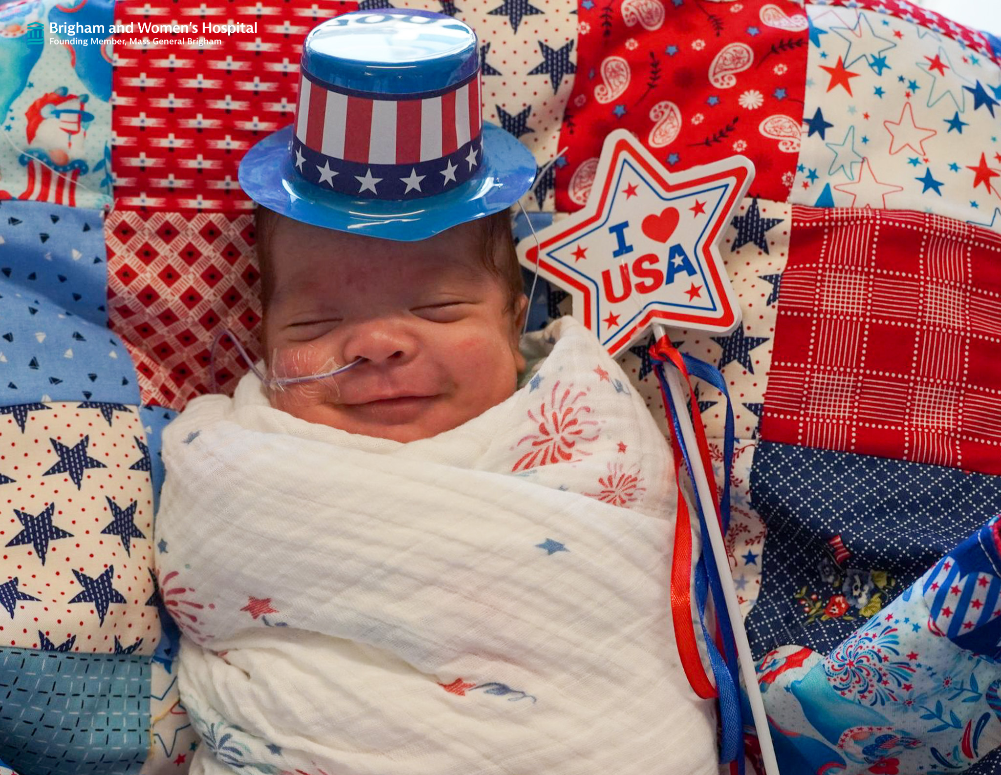 BOSTON, MA — Mass General Brigham is celebrating its 'smallest, patriotic patients celebrating their first 4th of July in star-spangled style' in the neonatal intensive care units at Mass General for Children and Brigham and Women’s Hospital.