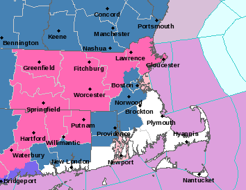 UPDATE: A Winter Storm Warning was issued for Worcester, Essex and most of Middlesex County for Saturday night's storm on Friday.