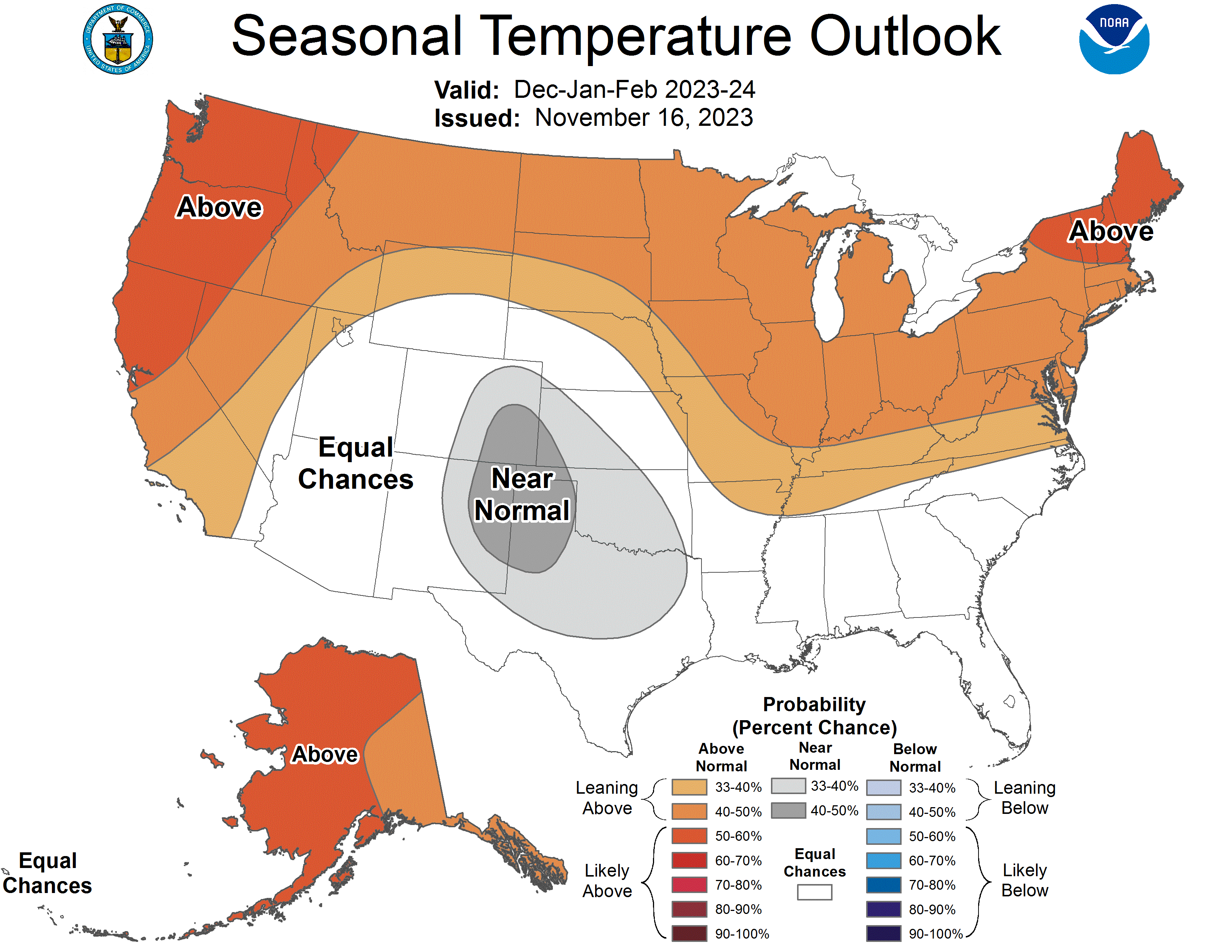 El Niño conditions are already inevitable, according to a consensus of scientists, with sea temperatures in the Pacific several degrees warmer than usual. This warmer water impacts what weather is carried by the winds to the United States. It's now considered very likely that this