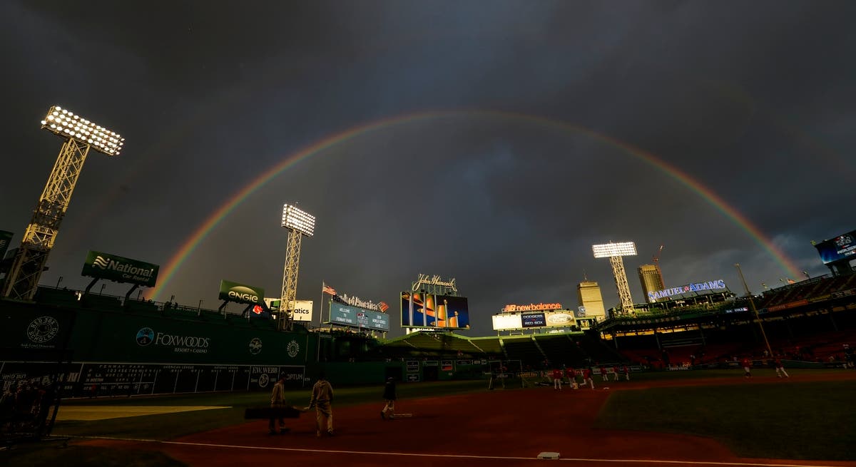 A rainbow is seen over Fenway Park before Game 2. (AP News)