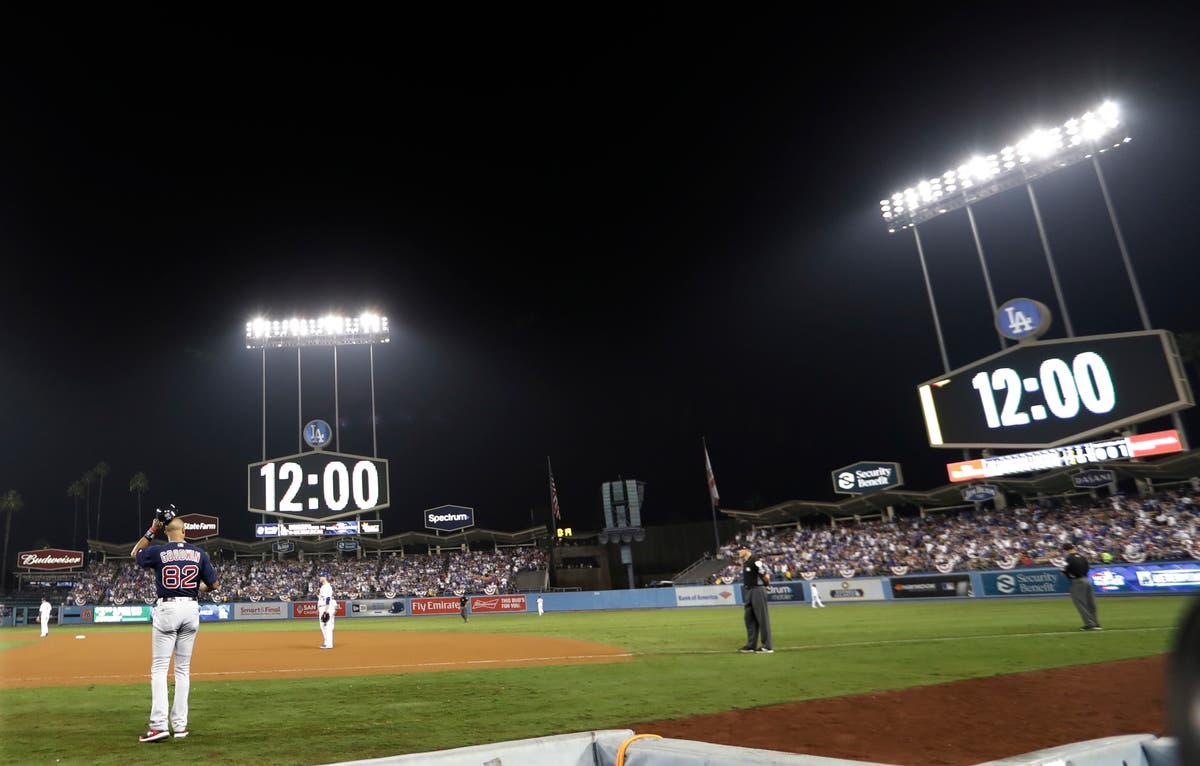 A clock in Dodger Stadium turns to midnight at the beginning of the 17th inning in Game 3 of the World Series baseball game between the Boston Red Sox and Los Angeles Dodgers on Saturday, Oct. 27, 2018, in Los Angeles. (AP News)