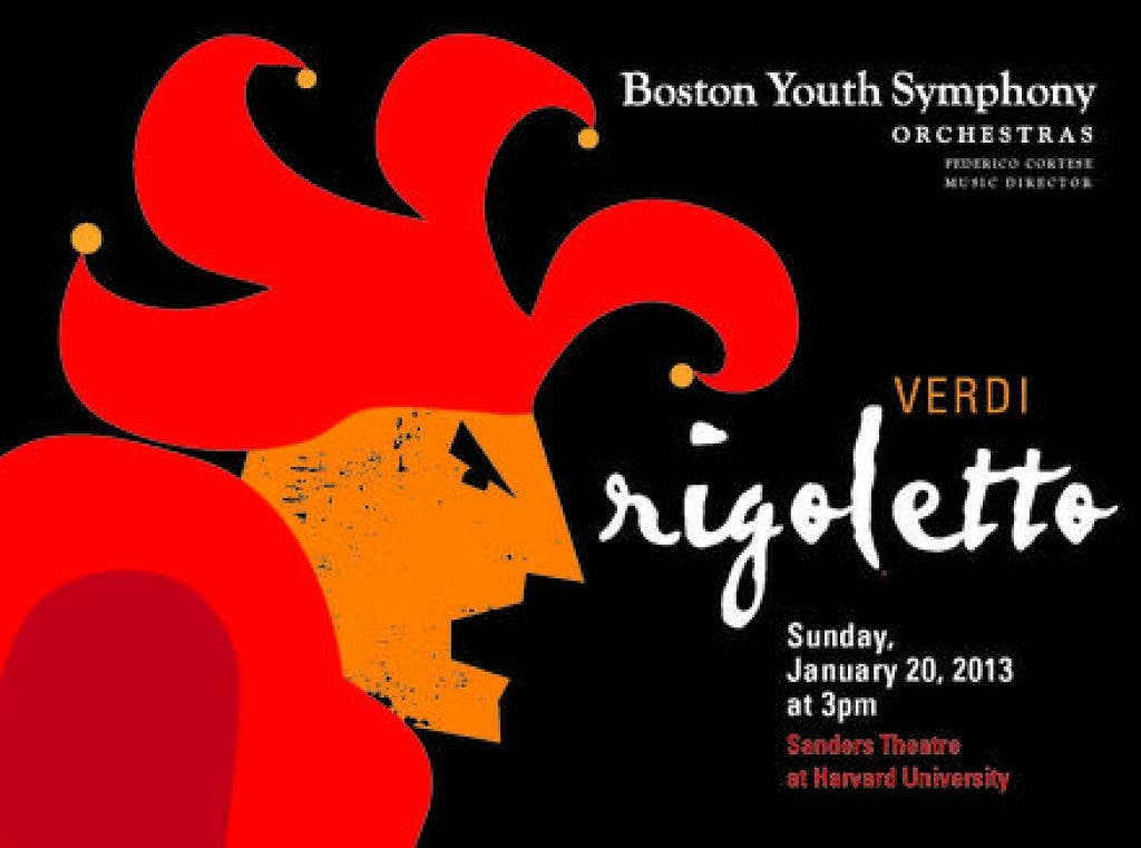 This performance of Rigoletto will be conducted by BYSO Music Director, Federico Cortese, Doug Fitch as Stage Director and Designer, and the performance will feature the Handel and Haydn Society Chorus. This one time only performance takes place on Sunday, January 20, 2013 at 3pm at Sanders Theatre at Harvard University. Tickets start at only $30 and discounted student and senior tickets are available; call Sanders Theatre Box Office at (617) 496-2222. Free parking is available at the Broadway Garage on Felton Street.