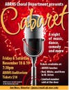 ABRHS Choruses present their 17th annual Cabaret Night! Come see the variety of acts including singing, dancing, comedy, magic, and drama, performed entirely by AB Chorus students! Performances held in the ABRHS auditorium on Friday & Saturday, November 18 & 19 at 7:30 pm. All tickets are $10.00 & may be purchased at all ABRHS lunches, Red, White, & Brew in W. Acton, or by contacting Jennifer Moss at jmoss@mail.ab.mec.edu. (ABSAF passes are not accepted to this fundraising event.)