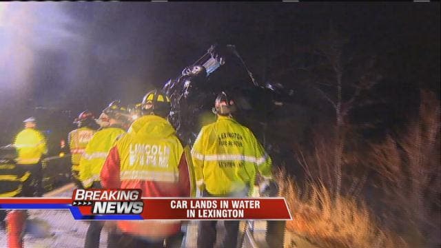 Fox 25's Bill Sheerin reports that the vehicle landed in about waist-deep water.