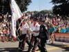 The celebration began with a parade featuring local veterans, musicians, Girl and Boy Scouts and local gymnasts and a baton group. Raisman arrived in a sports car to the cheers of the crowd who followed her escort to the podium at Memorial Park.