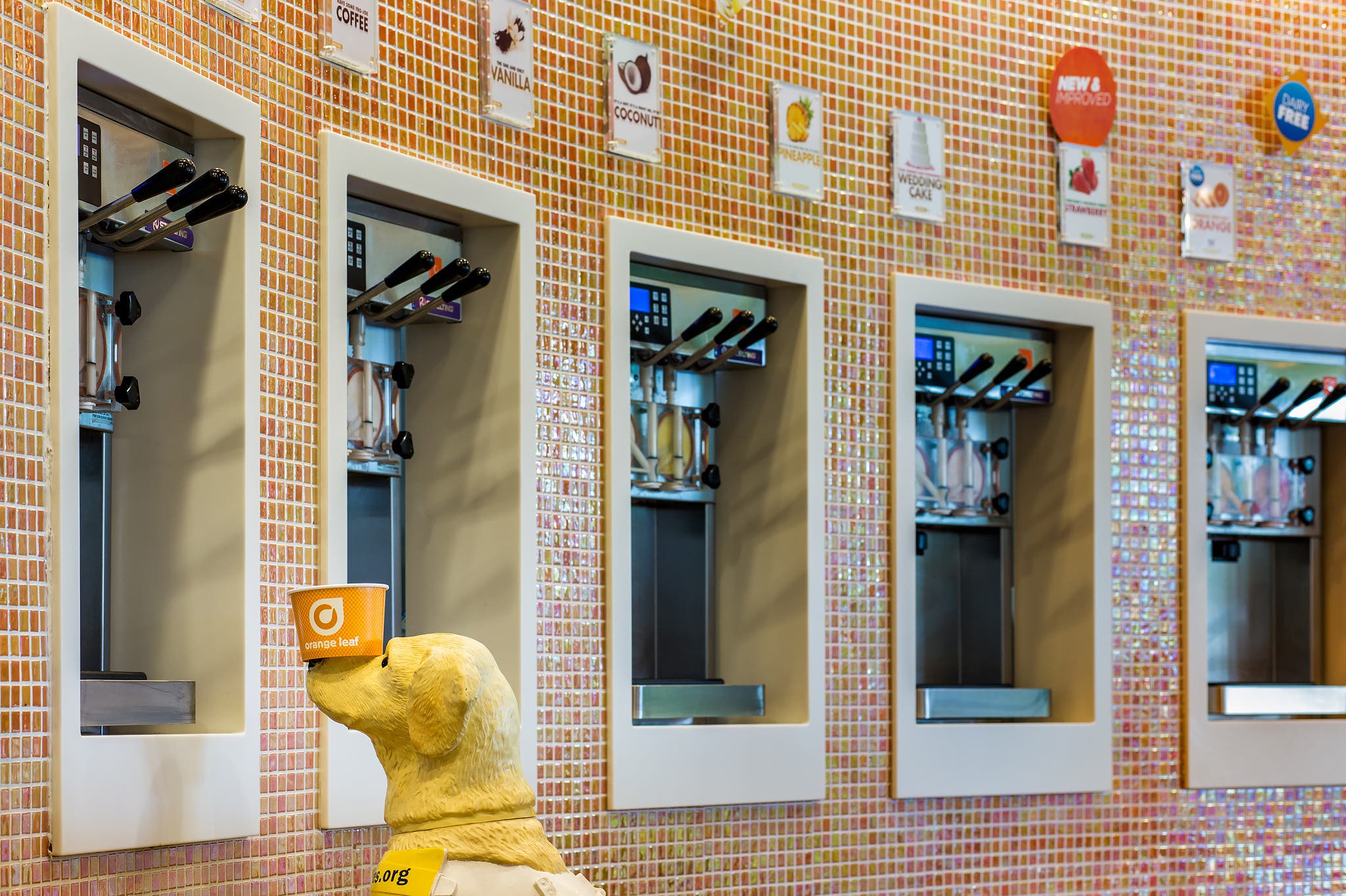 “Maven and Pilot are essentially a life-sized guide dog “piggy” bank which help us grow awareness and raise funds to offset the training, food, and medical expenses necessary to raise the finest service dogs in the world,” notes region volunteer Jeff Borkowski. “We’re regular patrons of Orange Leaf and thought they would make a great host for our Donation Dog. Orange Leaf didn’t hesitate in welcoming us in, which is testament to their commitment to the community and giving back.”