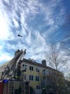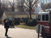 The building was on fire, but firefighters were able to confine most of the damage to the attic and top floor.