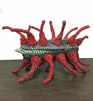 To kick off the residency, there will be a reception on Monday, December 9, from 7 to 9 pm hosted by the Robbins Library, one of the PATHWAYS project partners. The public is welcome to meet Michelle Lougee, see some of her work, and hear more about plans for free public workshops, where participants can learn her techniques and help make sculpture for the ACAC’s PATHWAYS initiative. Lougee crochets her inventive shapes from “plarn” – yarn made of slices of plastic bags. Please bring your own bags to donate to the project, especially newspaper subscription delivery bags.