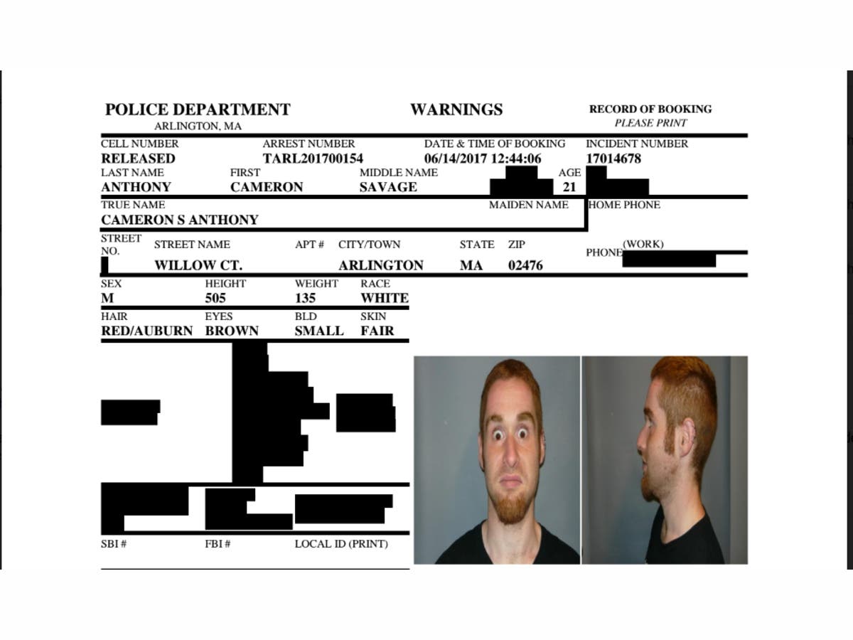 A man told police that he arranged to meet up with Cameron Anthony of Arlington but who he only knew as "Twisted Savage" from Facebook. The man said Anthony had followed him too closely recently and wanted to know why. The two agreed to meet in person to talk it over, the man told police later. When he arrived and started walking toward the man, Anthony allegedly yelled "white power," used the "N" word directed at him, and was repeatedly giving the white power salute.