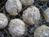 Let cookies cool slightly; roll in powdered sugar while still warm. Feel free to give them one more dip in the sugar once they are fully cooled. Keep in an airtight container on the counter for about a week, or freeze.