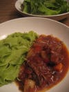 I went to Wayland this past weekend in search of ingredients to make a big pot of some kind of stew, and I found them. Carrots, potatoes, onions, apples, hearty greens, and root vegetables were plentiful. I splurged on some locally raised beef short ribs, and found a mix of organic salad greens. I decided to turn my ingredients into a pasta sauce when I found fresh spinach tagliatelle. But for the meat, the cost was comparable to shopping at the grocery store for similar items.