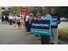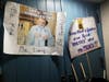 The team of protesters lined the driveway on two sides and stood, holding their signs relatively quietly.