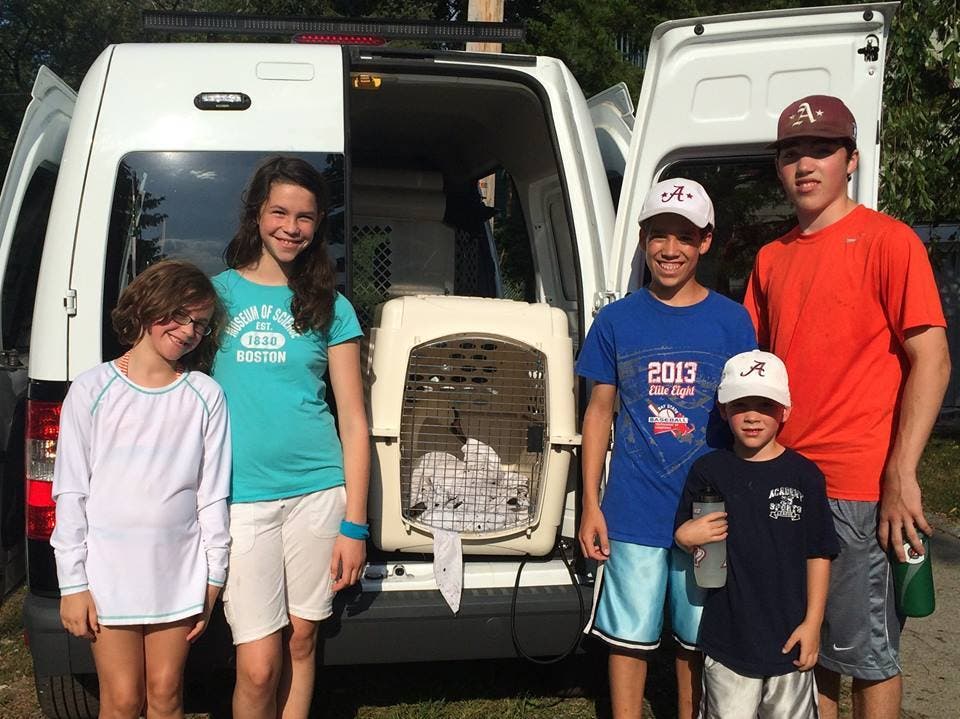 One of the kids called police after spotting the injured swan and then the kids, along with some kayakers, helped lure the swan with food to the animal control officer, according to Arlington Police.