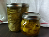 Sometimes the vegetable is cooked, sometimes not. Salt and vinegar are essential, sugar and spices are optional. The sky is the limit in terms of flavor, but I started this year with a classic bread and butter cucumber pickle. Here is my recipe, using a hot water bath to sterilize the jars and can the pickles (the Ball jar canning website has a helpful primer). This recipe can easily be doubled.