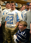 "This truly is as special of a day as we’ve ever had," said Tufts head coach Mike Daly. "Toughness is a huge thing we look for in recruiting. This guy is tough, competitive, and I love being around him. Today you have 50 new brothers. And we’re going to help you kick cancer’s butt."