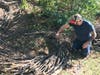 ARLINGTON, MA — If you’ve biked or walked or scooted down the Minuteman Bikeway at all this fall you likely came across some sites that made you stop in your tracks, or at least given you pause. A tree wrapped in colorful yarn? A plastic butterfly on a bridge? A fox under a bridge? A pair of words stenciled into the pathway? And most recently a unique crop circle-esque weaving of roots and tree branches from the path down to Spy Pond.