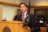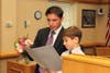 Following the Chief's Oath, Heagney's son Connor pinned the "Chief" badge onto his dad's uniform, much to the delight of the crowd. Heagney then addressed the audience, thanking his fellow officers and thanking the mayor for entrusting him with the position of Chief of Police. "If it matters to the citizens of Attleboro, then it matters to me," Heagney said. "The citizens are the eyes and ears of the police force and I have the utmost respect for them."