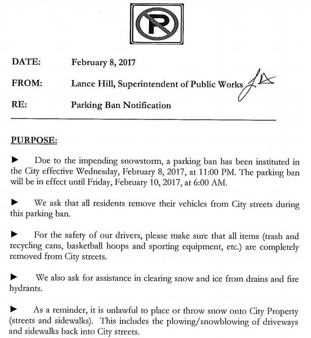 A parking ban is also in effect starting Wednesday at 11 p.m. and ending Friday at 6 a.m.