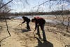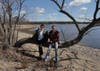 Over the past few days, water levels in the Turner Reservoir receded dramatically exposing bottles, shells and vegetation on top of the soft sandy ground normally seen by fish and occasional divers. An island located off Arcade Avenue and Route 152 - once isolated by water - is traversed by pedestrians. Visitors walk on the peninsula near the border of East Providence with dogs and fishing rods in hand.