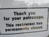 A sign on the take-out window and front door read:"Thank you for your patronage. This restaurant has permanently closed."