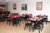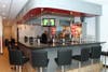 Francisco Amaya indicated that they wanted to convey a warm, inviting feel to the space and decided to work with shades of red, black, grey and whites in the diningroom, which has a capacity of about 75 diners. Artwork on the wall depicts locations from around the world, keeping with the international flavor of the Papagallo menu.