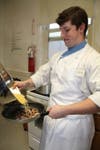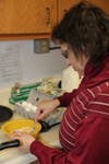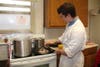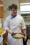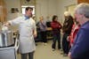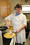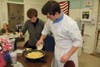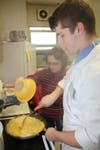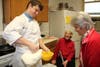 Senior citizens take cooking lessons from a Johnson & Wales cooking student.