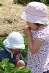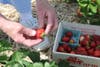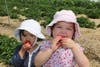 Families begin their annual flock to Four Town Farm for the red juicy strawberries that are ripe for picking.