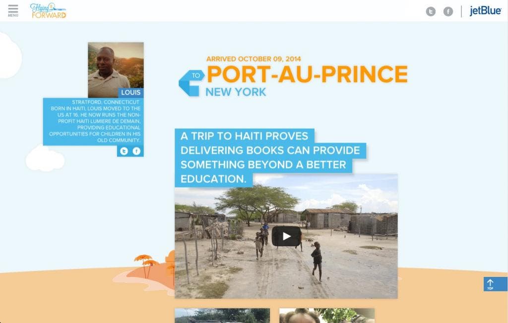 “As a traveler you can relate to the fact that you normally have a sense of purpose every time you travel, but that campaign really takes it to a higher level,” noted Hatch judge Luis Miguel Messianu, President and Chief Creative Officer of Alma. “I strongly believe that brands like people have souls, and they connect with the consumers and turn them into soul mates. I think this idea for Jet Blue really communicates the sense of purpose of doing something, of traveling for something.”