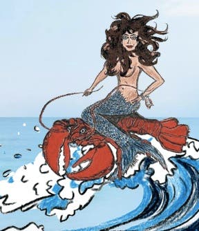 The sculpture, depicting a mermaid atop a lobster, is located at Salty's restaurant in Yarmouth. It was created by Hampton, N.H.-based artist Greg Grady to model Salty's logo.