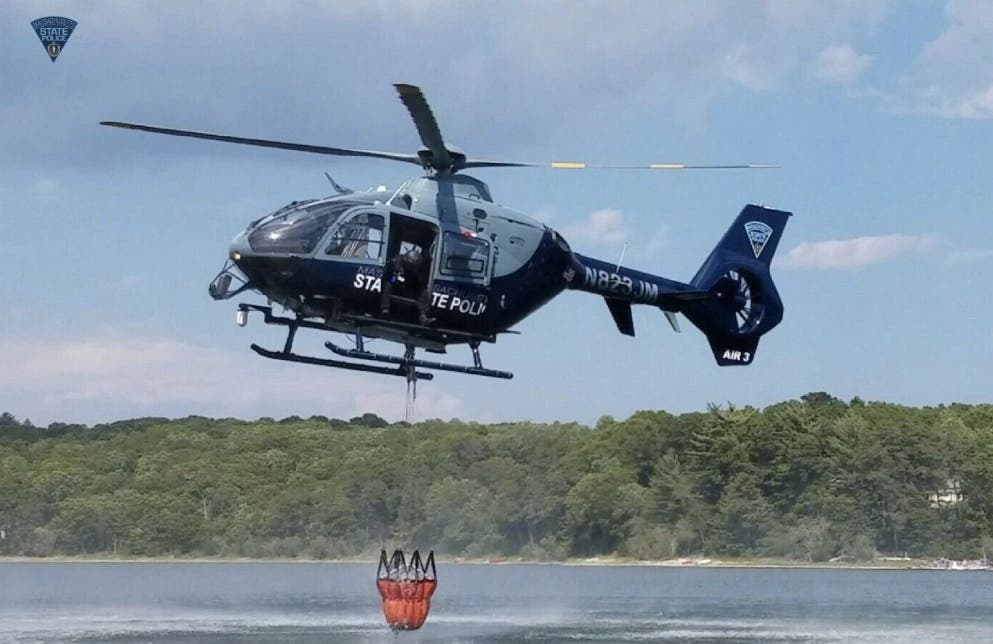 The base houses the Air National Guard—and two Blackhawk helicopters equipped with water buckets were used to fight the blaze. A State Police helicopter assisted. The helicopters are equipped with "Bambi Buckets" that can hold up to 600 gallons of water.
