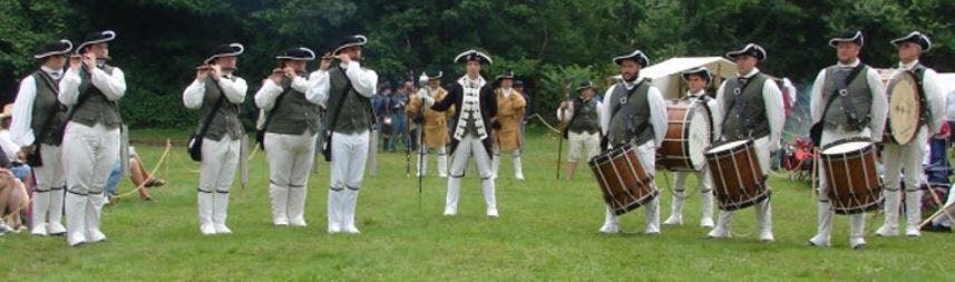 The Colchester Continental Fife & Drum Corps was formed in the late 1800s in Colchester, CT and was later reformed in 2004 after parting around the time of the Second World War. The uniforms represent the clothing of the 18th Century and consist of military overalls, dull green waistcoats and haversacks.