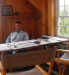 Peter Eastman grew up summering on the Cape and working at Howard Boats. He is now a full time resident who owns the business and has one of the best office views around.