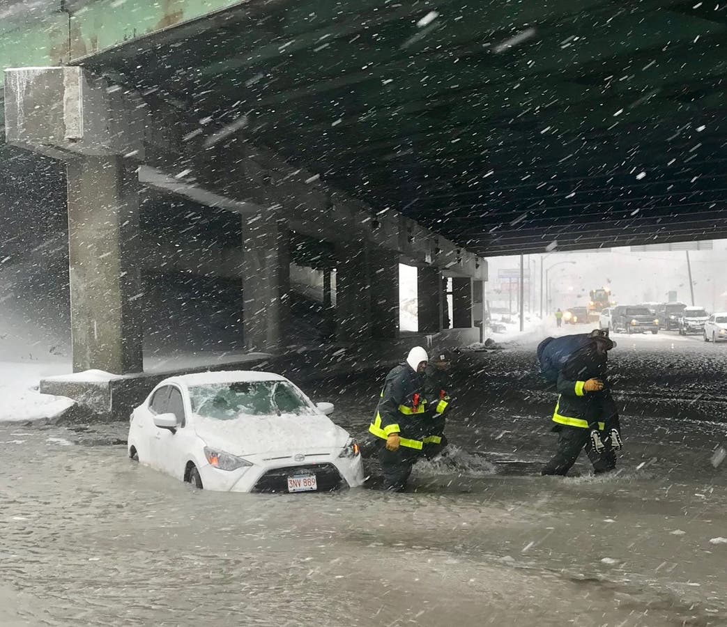 Photo of a Boston street flooded and rescue courtesy police and fire.