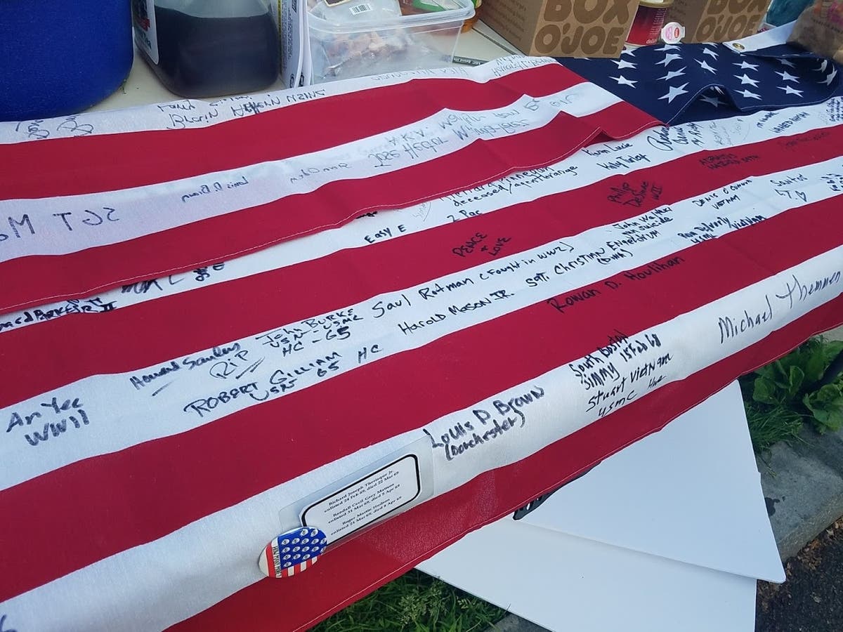 Once the week is up the tents will go to the New England shelter for homeless veterans. The American flag draped on a table nearby with the names of people who have lost their lives in the service, to poverty, or to gun violence will be delivered to Gov. Charlie Baker.