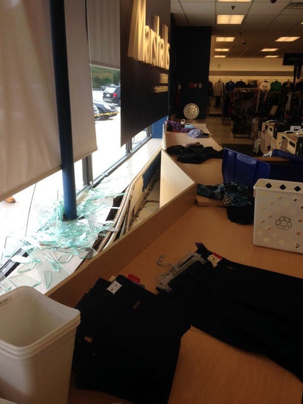A car was driven into the Marshalls store on Tuesday, which resulted in the minor injury of one employee.