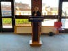 Three student speakers praised the program and the work the class instructor Charles Zhang and Nahabedian have done. Each speaker demonstrated their English skills and commented on how fun the experience was, while Zhang handed out the certificates.