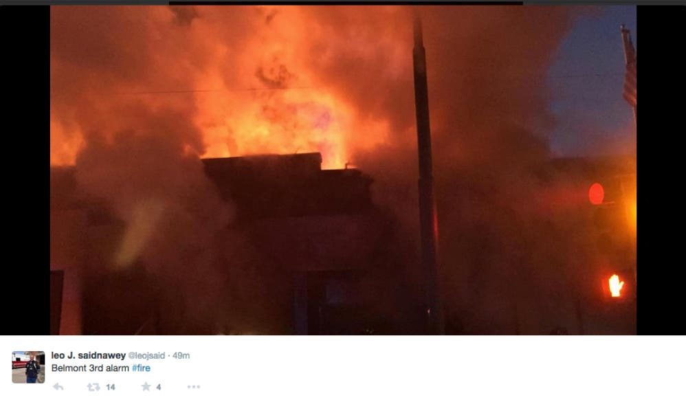 Belmont Fire and Rescue teams were called Jimmy’s Food Mart on Belmont Street earlier tonight for a three-alarm blaze, according to a number of posts on Twitter including video posted by the town’s Director of Emergency Management, Leo Saidnawey.