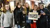 Belmont residents (from left) Josh Grassia, Amy Wu and Amanda Su, stopped by the Belmont Light display during the recent Turn on the Tree celebration to receive a Belmont Light bag filled with energy saving information and an energy efficient light bulb from Belmont Light Senior Customer Service Representative Debra Bottiglio, center, and Customer Service Representative Kerri Benson, right. The bag also included the 2017 Belmont Light historical calendar.