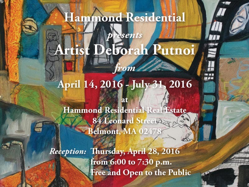 Belmont, Mass. (April 6, 2016) – Tod Beaty, manager of Hammond Real Estate’s Belmont office located at 84 Leonard Street, is pleased to announce that the office will be exhibiting works by artist Deborah Putnoi from April 14 – July 31, 2016. A celebratory reception will take place on Thursday, April 28 from 6:00 p.m. – 7:30 p.m., at which time the artist will be available to discuss her works which are available for purchase.