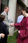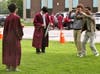 Before the possession of the soon-to-be the school's latest alumni, Principal Dr. Michael Harvey was rounding up crimson-robed seniors hanging out in the hallways and outside.