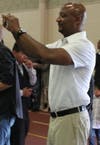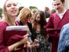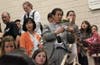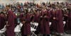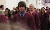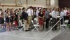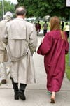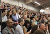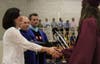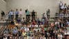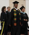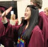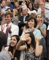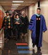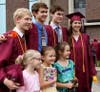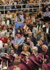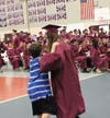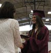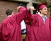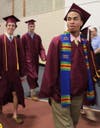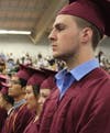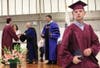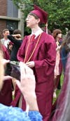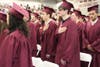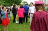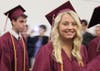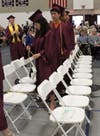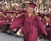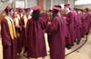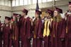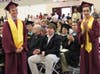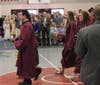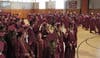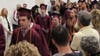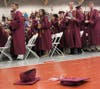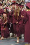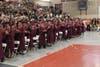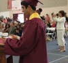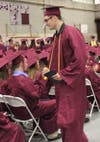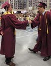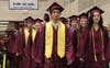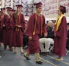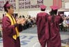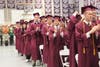 But just after 3 p.m., the approximately 270 seniors were finally released from their holding pen in the second-floor wrestling gym to head down the stairs, into a hallway corridor behind faculty and staff before marching together to Elgar's "Pomp and Circumstances" into the Field House to a warm welcome.