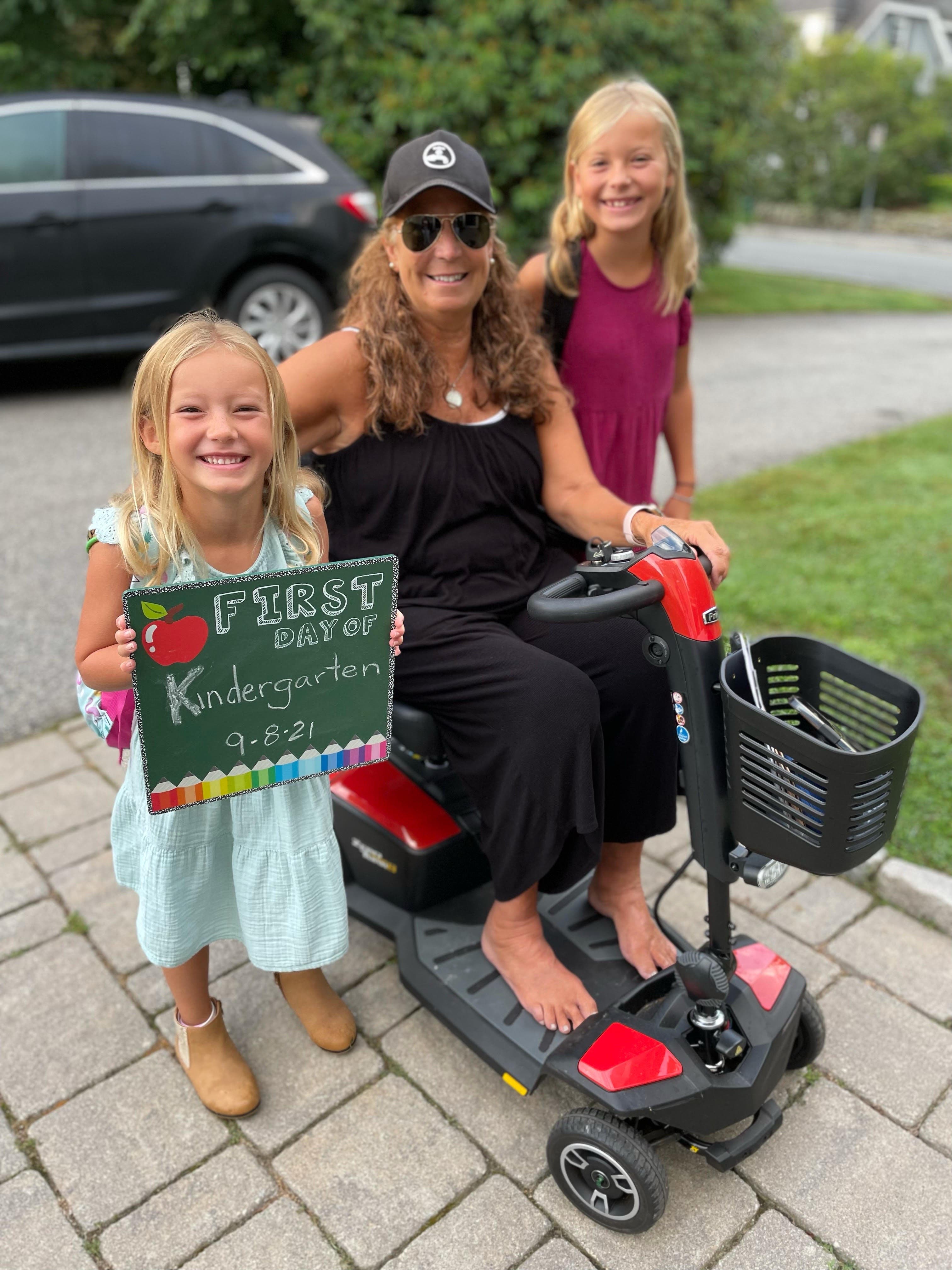 "My muscles might not be as strong, my steps are much slower, I wear a brace on my right foot, I can't walk without a cane or holding on tight to my husband's arm," she said. "I've been using a wheelchair or a scooter to make my way around town or to go to the bus stop to see my granddaughters off on their first day of school.