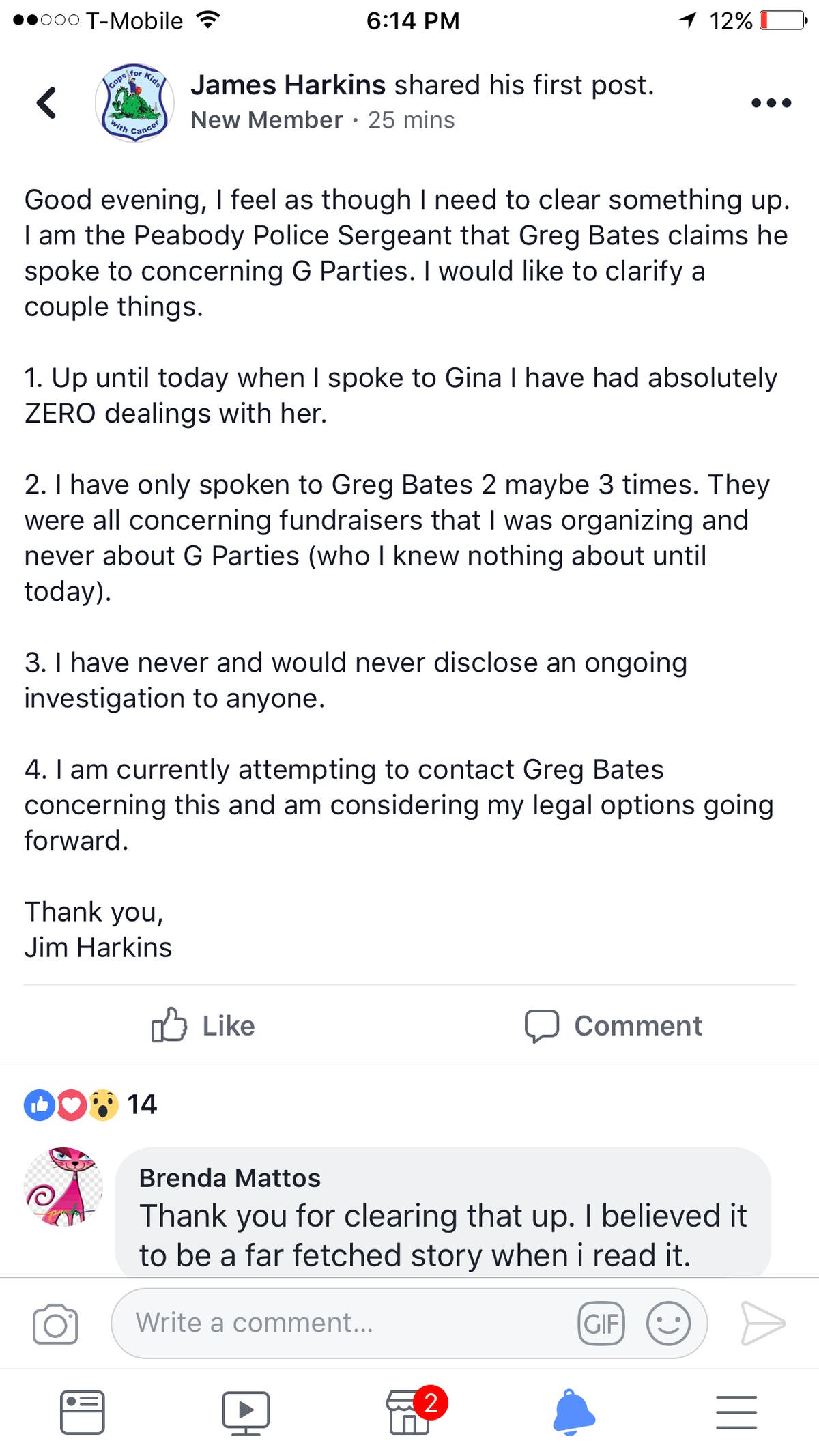 Goodwin provided the following screen shot of a message from Peabody Police Sergeant Harkins: