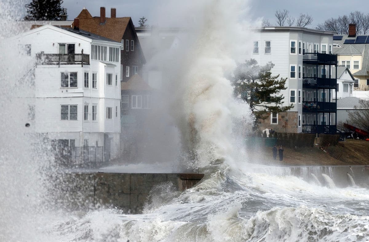 BOSTON, MA — Coastal communities in the Northeast experienced damaging high tide flooding and the lingering effects of powerful, gusting winds Saturday even as residents tried to shake off a nor'easter that had already inundated roads and basements, snapped trees and knocked out power to more than 2 million homes and businesses from Virginia to Maine. All along Massachusetts' heavily populated coast that includes Boston and Cape Cod, Saturday's midday high tide saw roaring, white-capped waves crashing onto shorelines, the churning surf battering beachfront homes, dousing docks and harbors and taking huge chunks out of the eroding coastline.