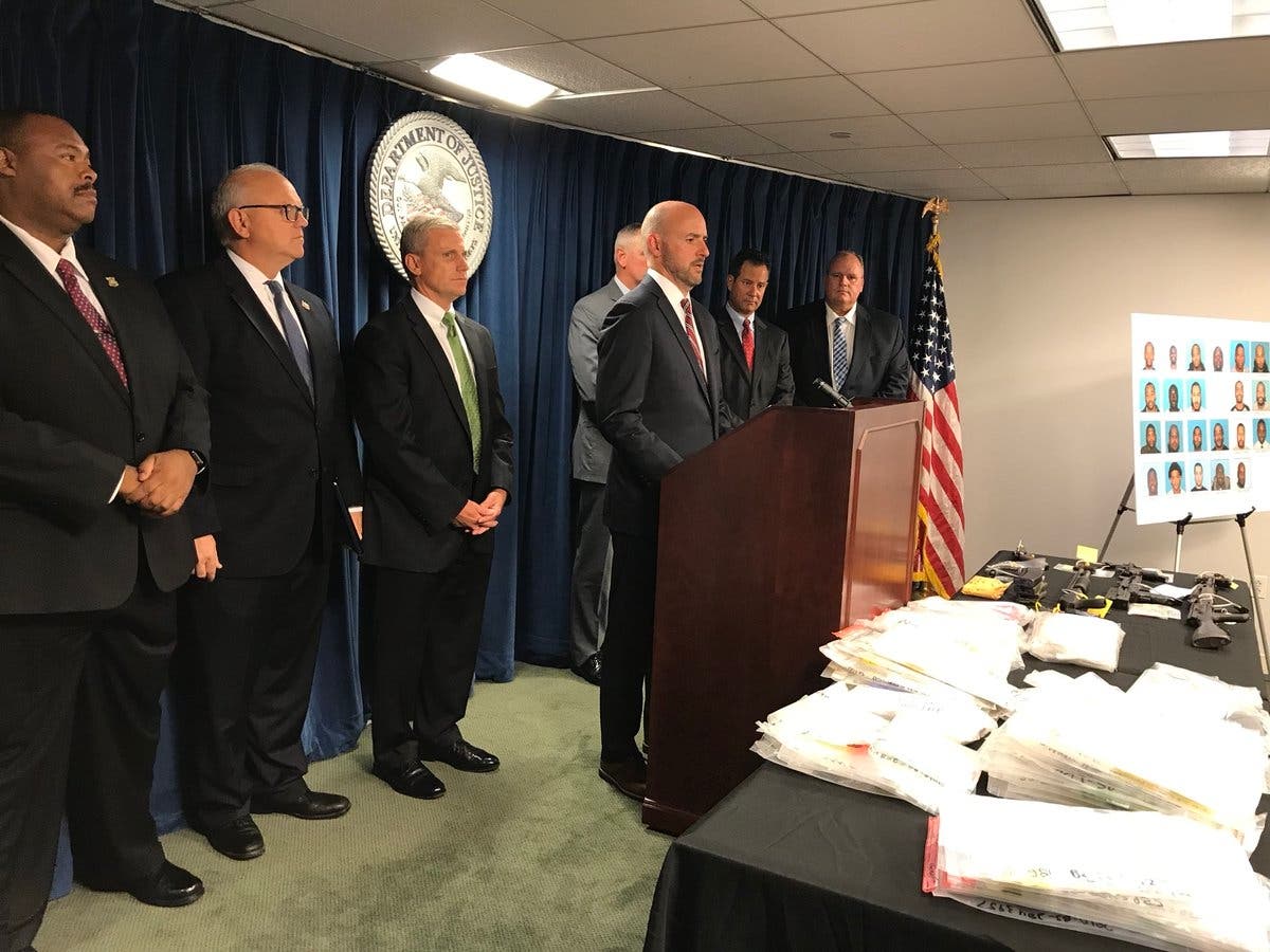 US Attorney announcing arrests of more than two dozen people from Brockton and Boston on drug and weapons charges. pic.twitter.com/gRTxmTNYlC