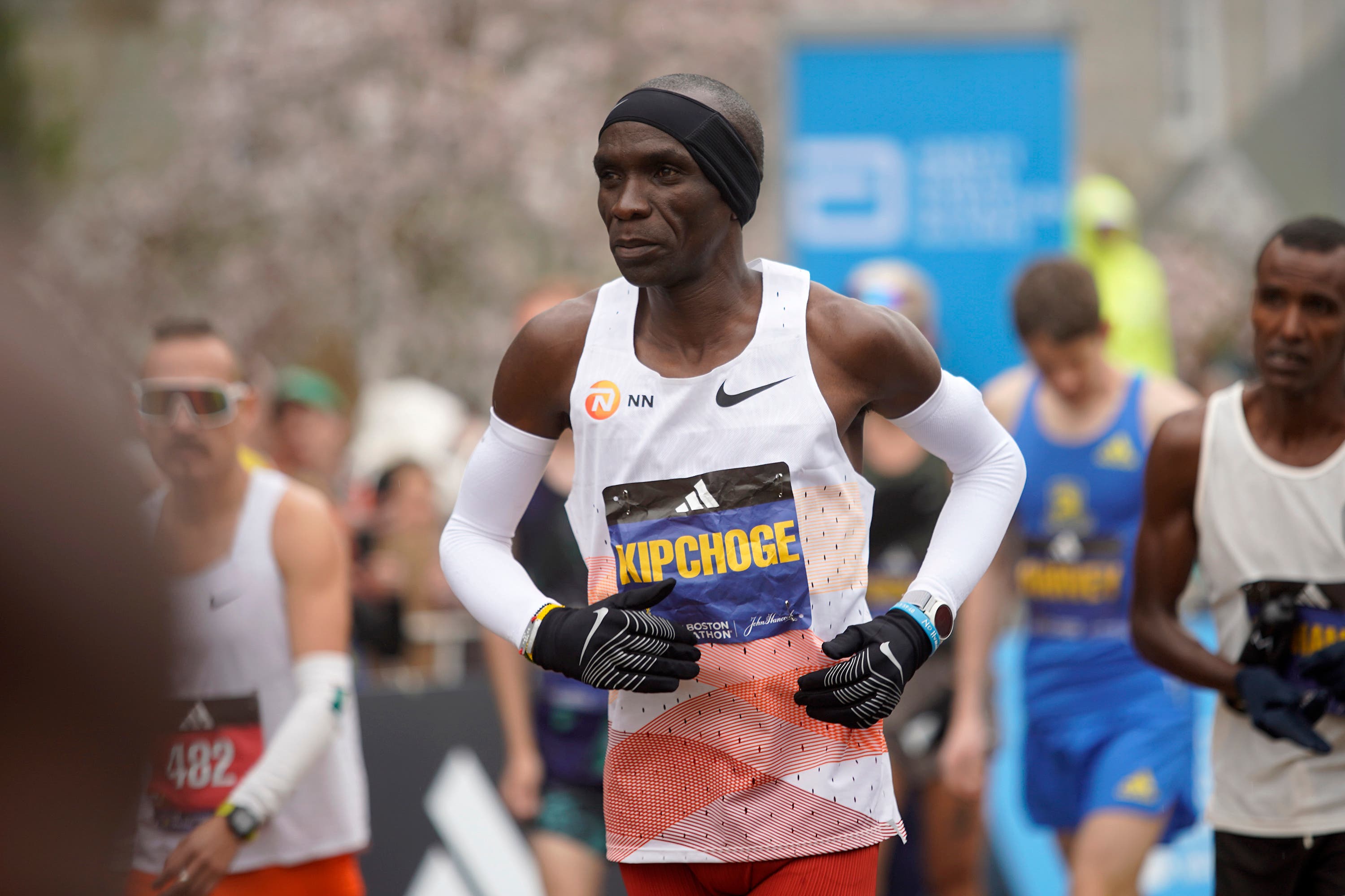 Eliud Kipchoge, also of Kenya, a world record-holder, two-time Olympic gold medalist and first-time Boston Marathon runner was favored to win the men's division but trailed behind.