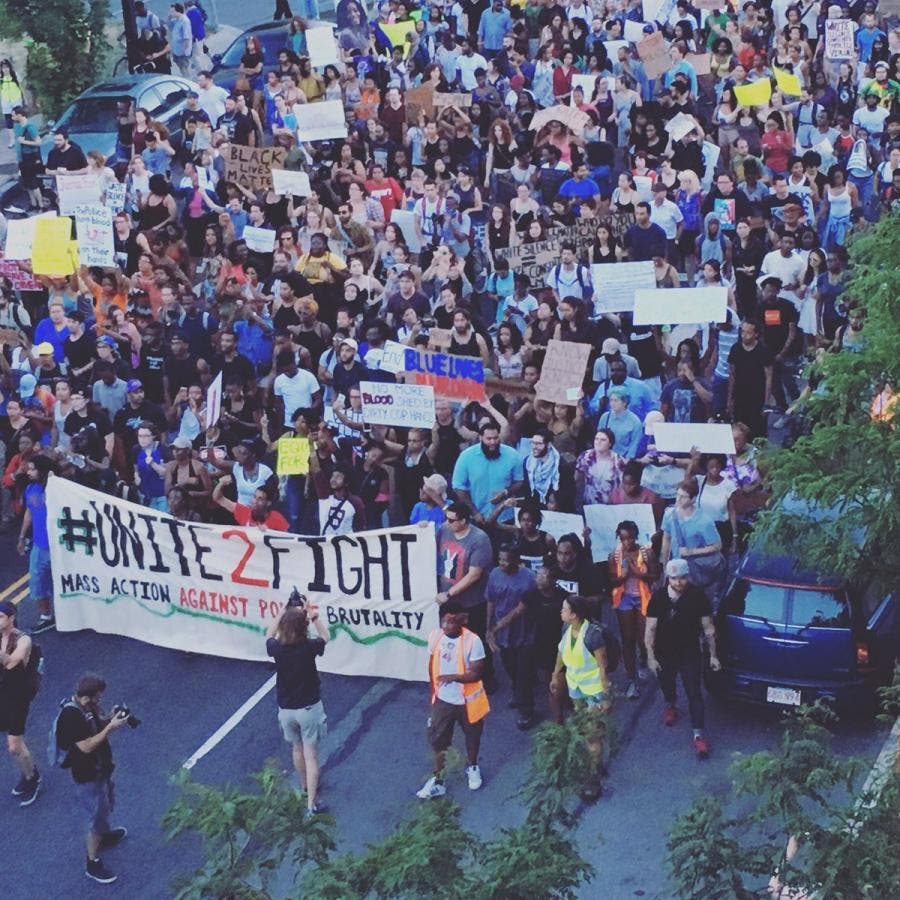 In a Facebook post announcing the protest, Mass Action Against Police Brutality condemned the killings in Dallas and emphasized that there was no connection between their group and the gunman.