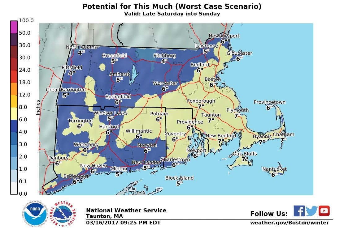 The forecast should firm up Saturday, but for now Southeast Mass. and the Cape and Islands have the highest risk for getting the most snow. The Boston area, Merrimack Valley, North Shore and parts of Central Mass. could also see as much as 6 inches.