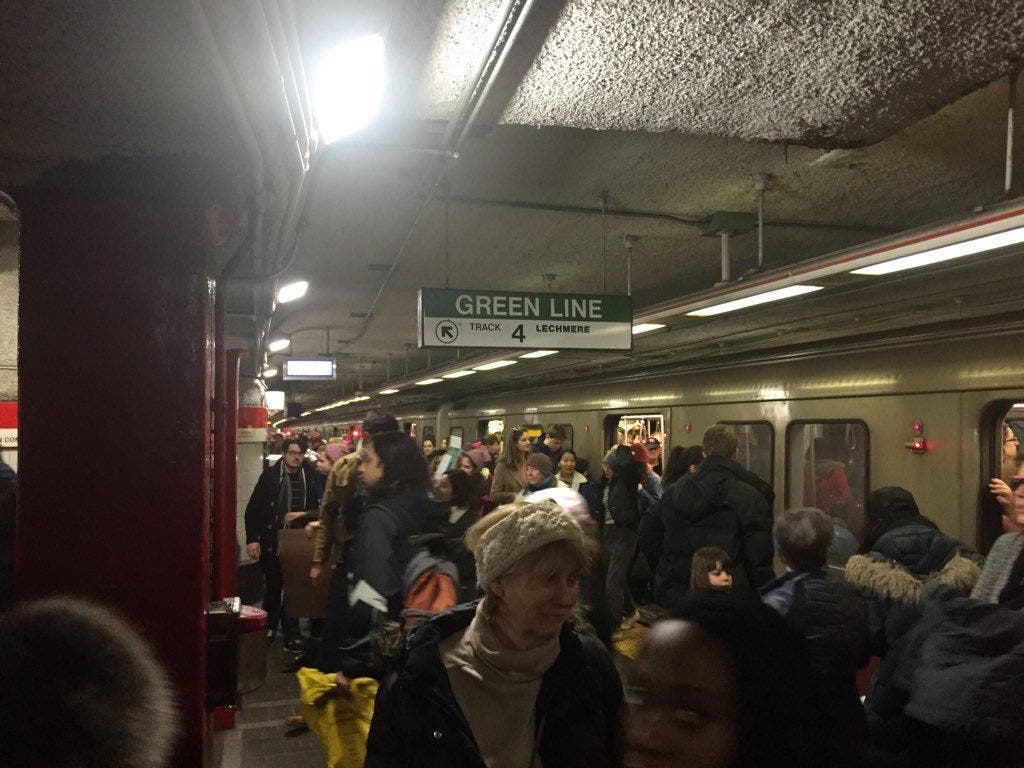 The MBTA says "all subway lines may experience moderate delays today due to heavy ridership resulting from the Boston Women's March."